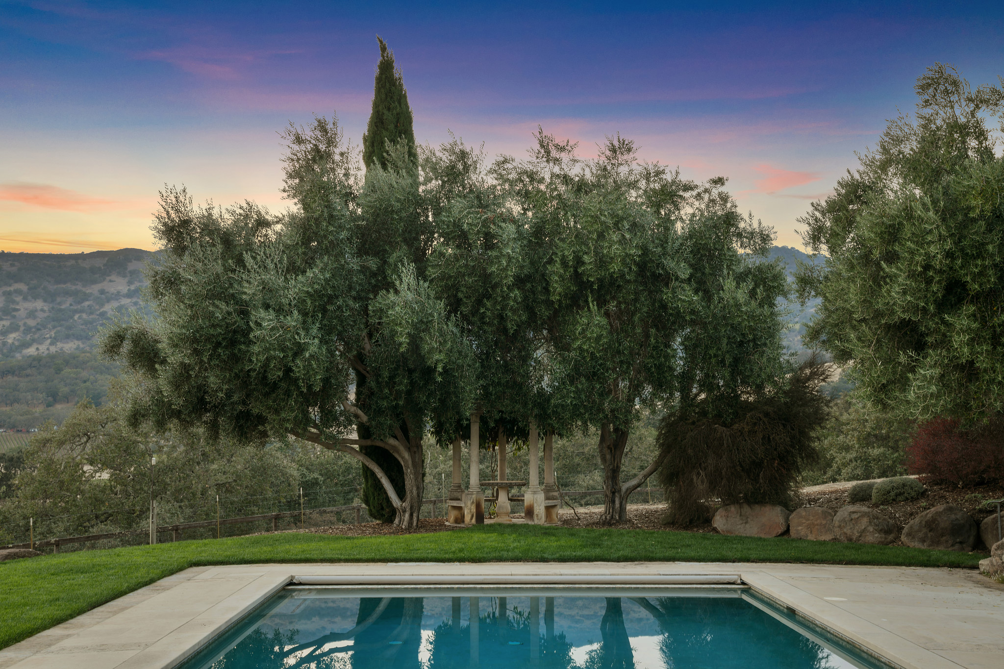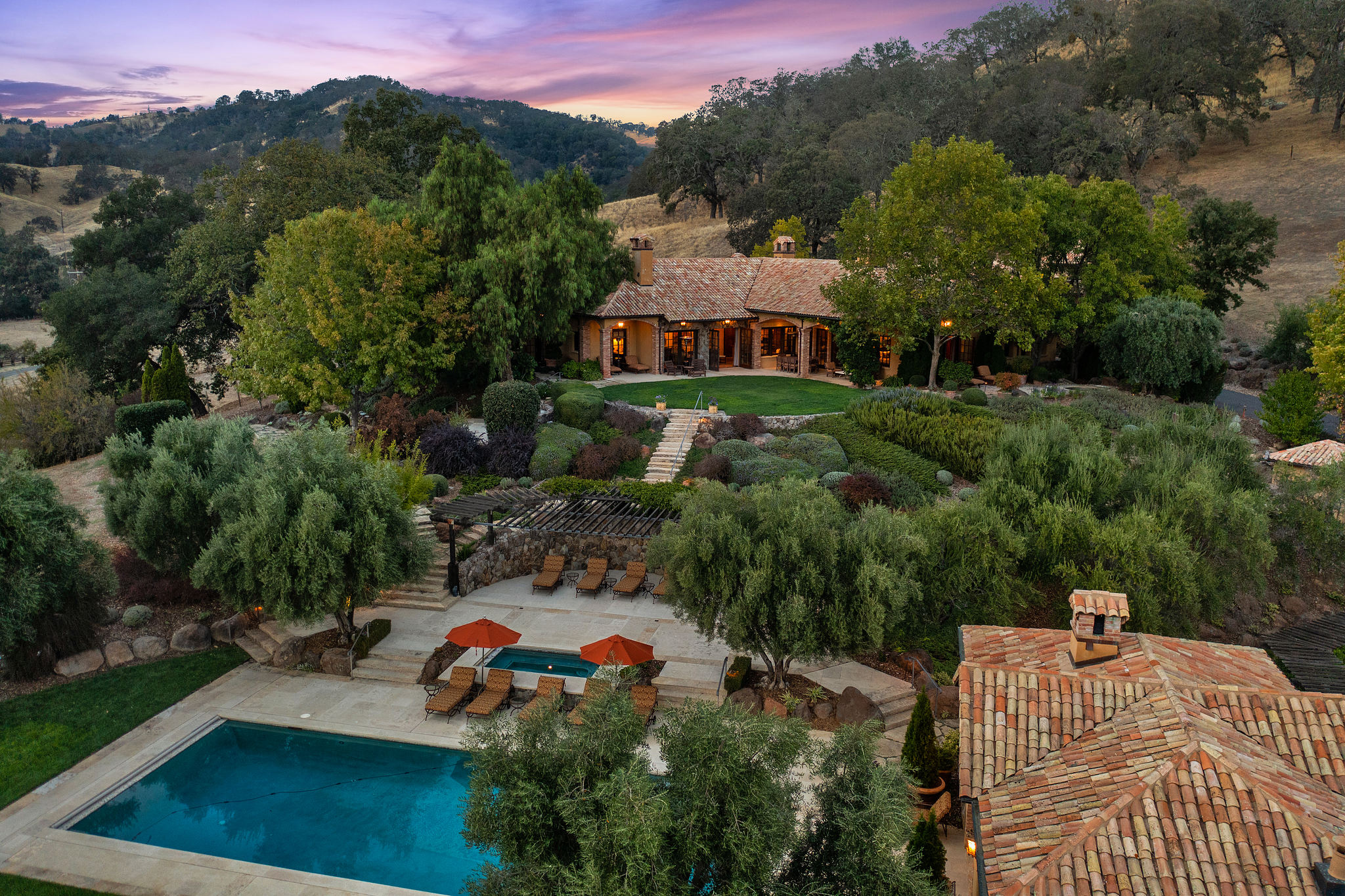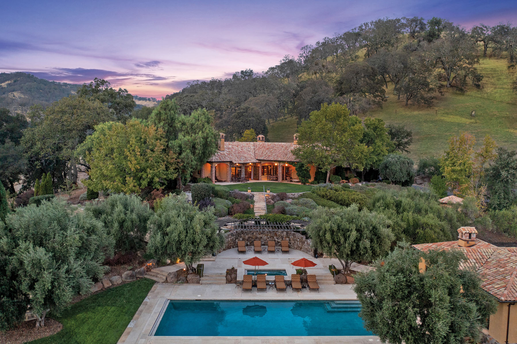 Approximately 160.6 acres | 4 bedrooms, office, bunk room | Pool pavilion | Wine vault | Custom 10-car/Entertainment pavilion | Tennis | Pool & Spa